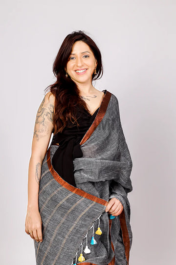 Brown Handloom Silk Tissue Linen Peacock Paithani Pallu Saree