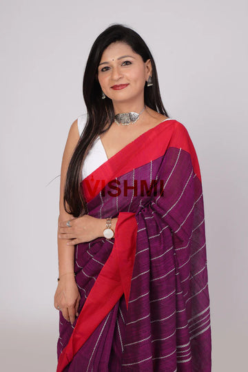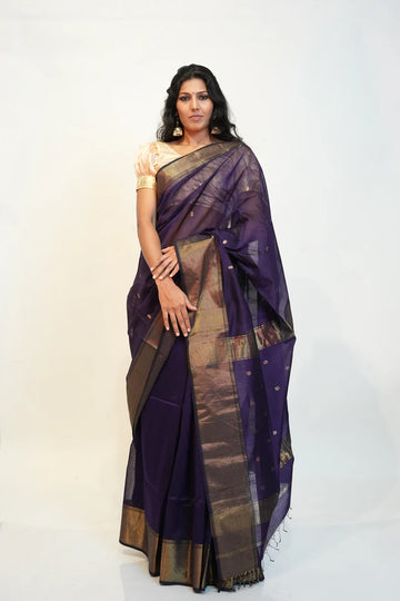 Purple Pure Silk Kadwa Roopa Sona Butti Banarasi Saree