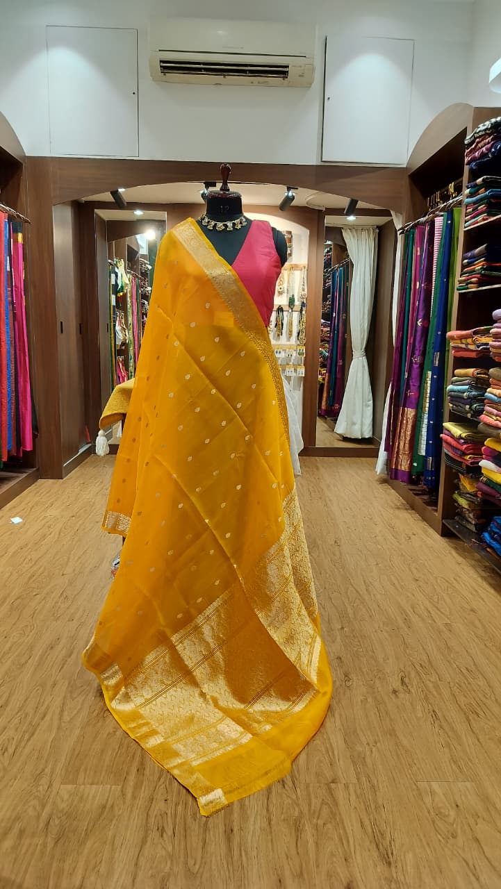 Mustard yellow Kora Silk Kadwa Sona Roopa Banarasi Saree
