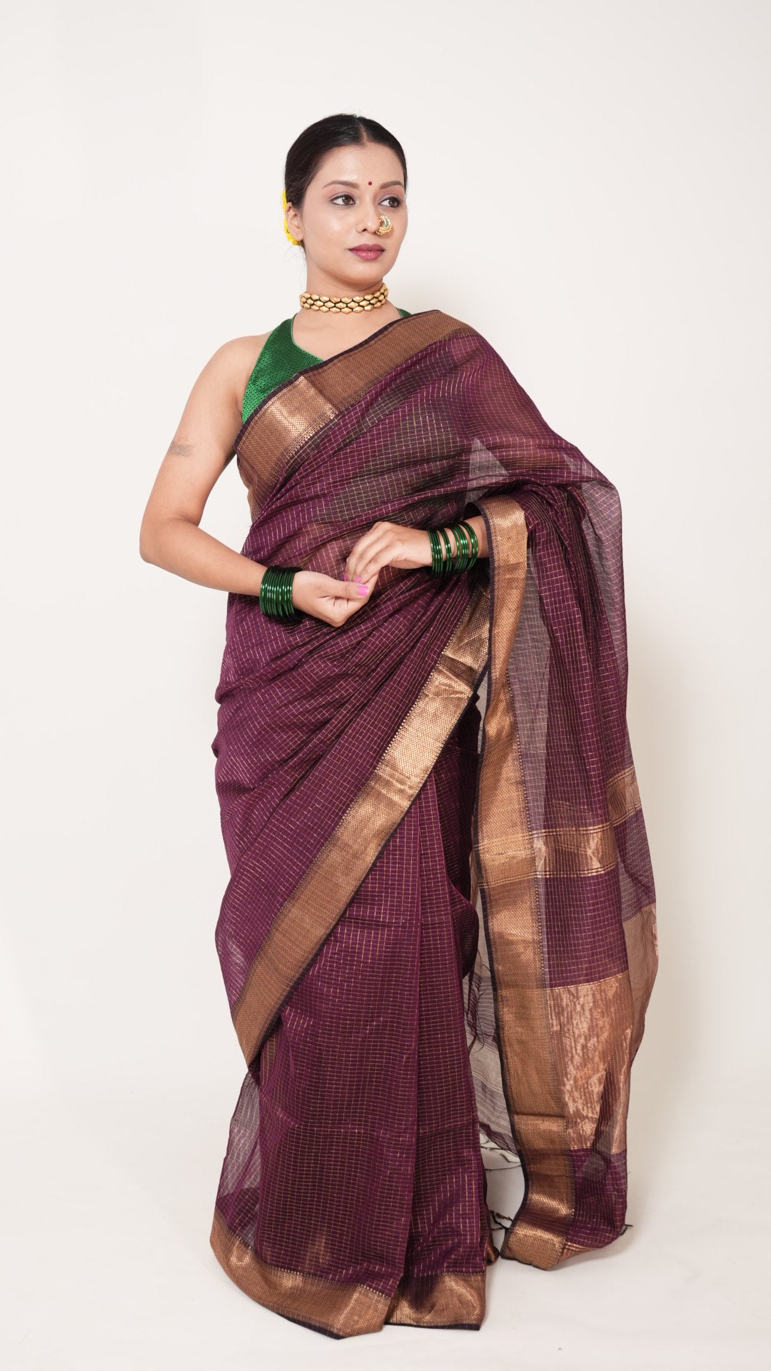 Wine Maheshwari Zari Checks Handloom Saree – Authentic Handwoven Elegance Discover the timeless beauty of...