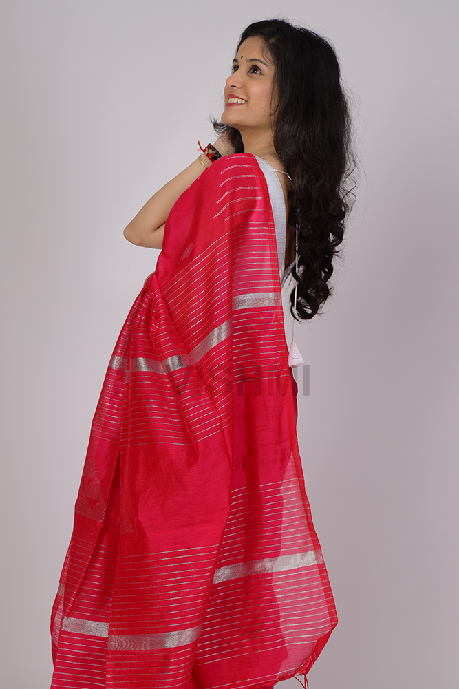 Hot Pink with Temple work Zari-strip Pallu Handloom Cotton