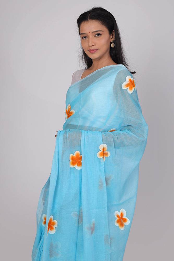 Mul Cotton Hand-Painted Saree – 5.5 mtr without blouse Elevate your everyday style with the...