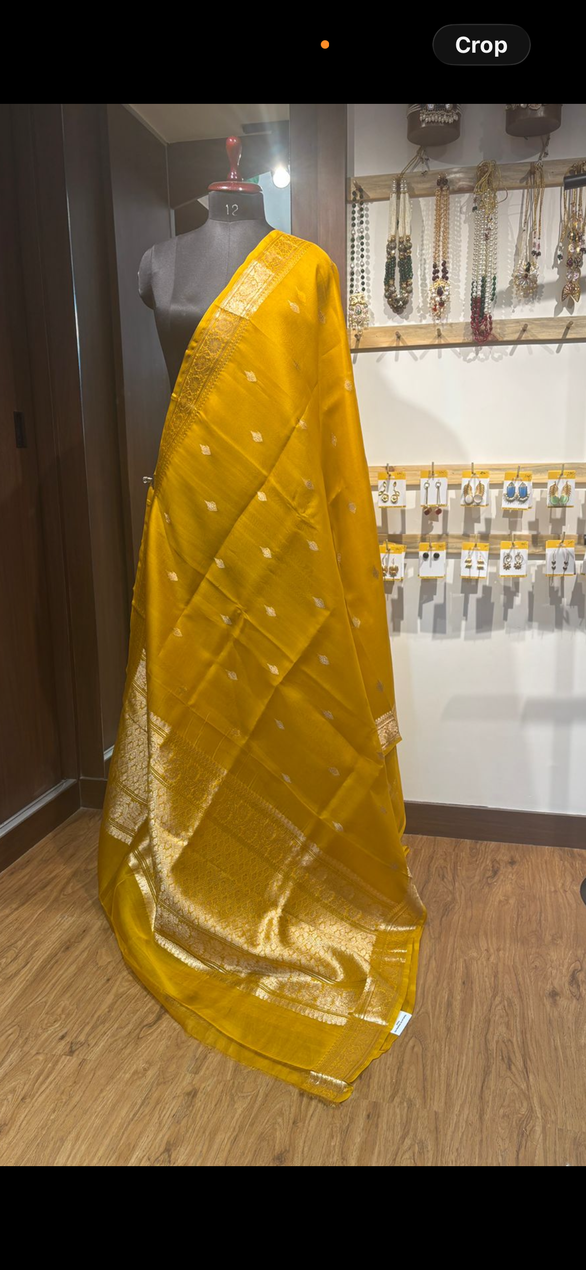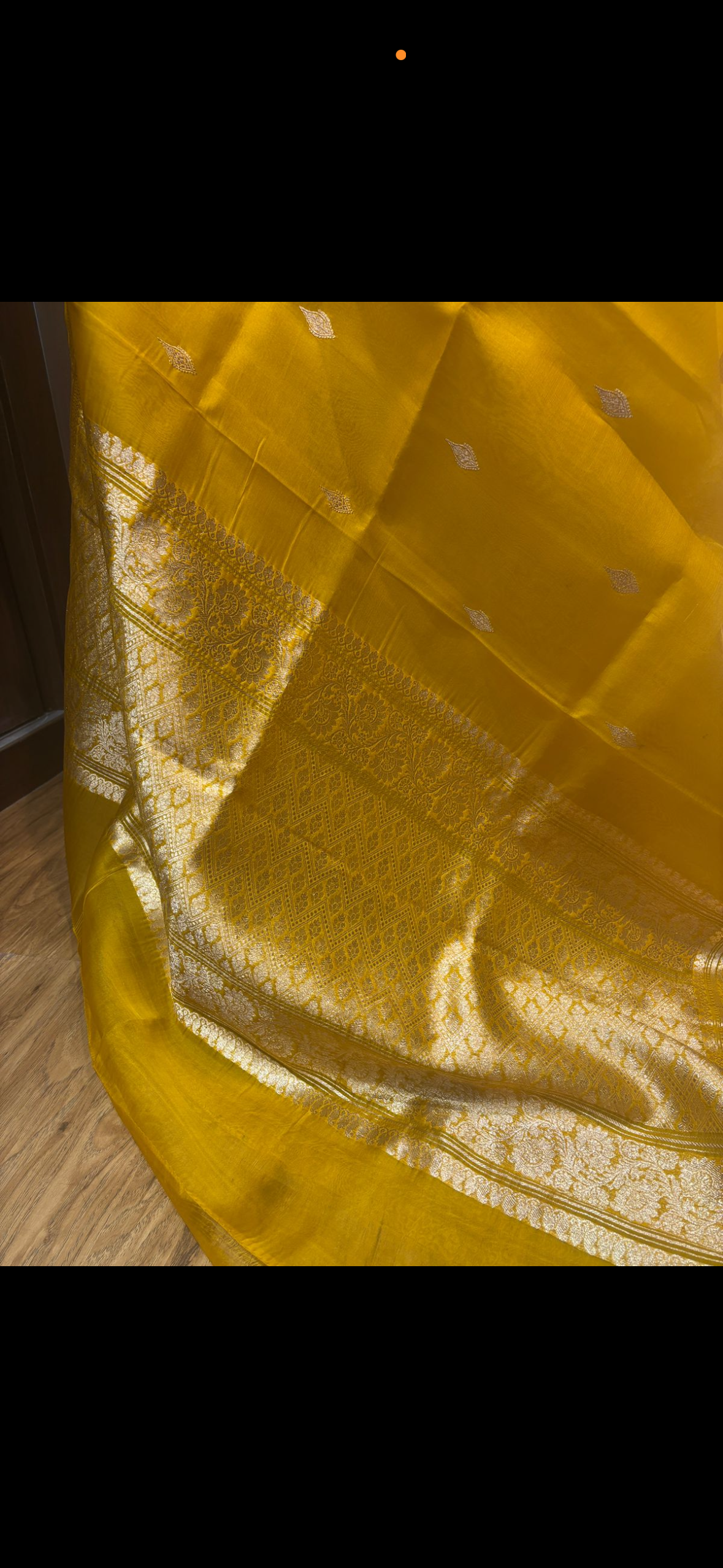 Mustard yellow Kora Silk Kadwa Sona Roopa Banarasi Saree
