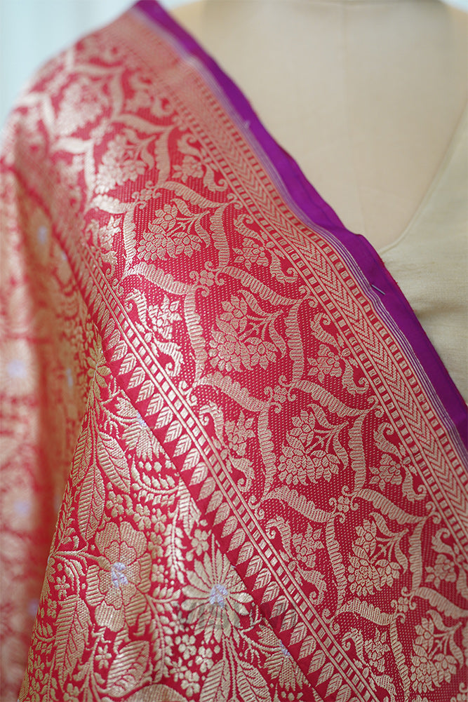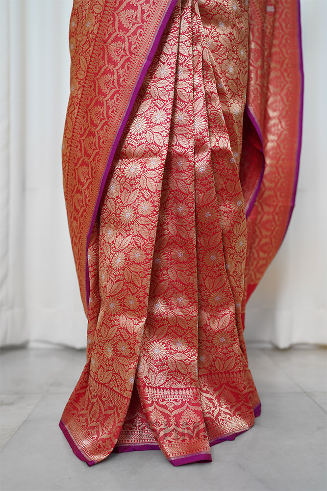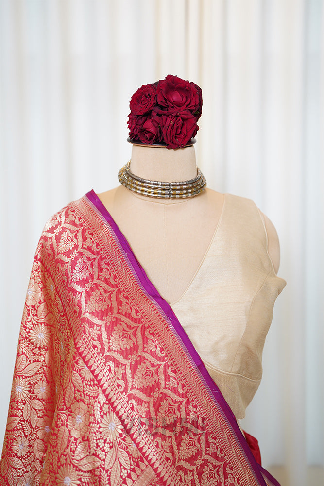 Red Pure Silk Kadwa Gold Zari Brocade Banarasi Saree