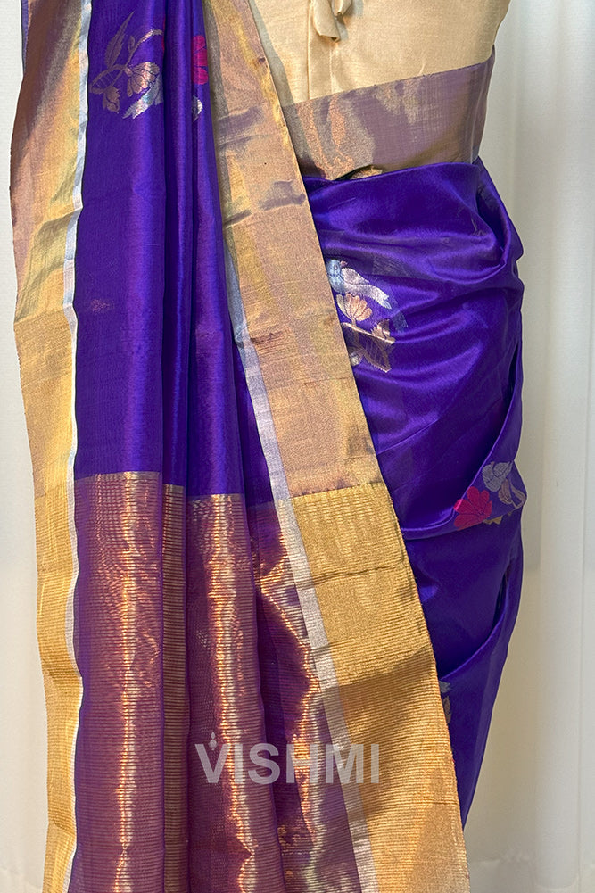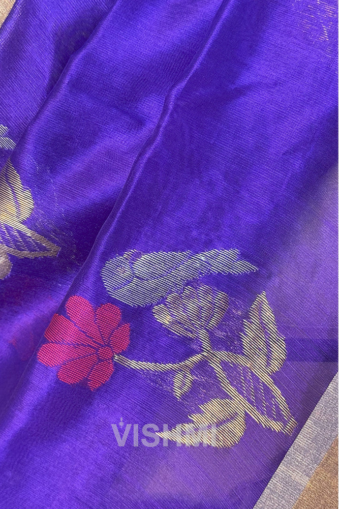 Royal Blue Chanderi Pure Silk Bird Motif Saree
